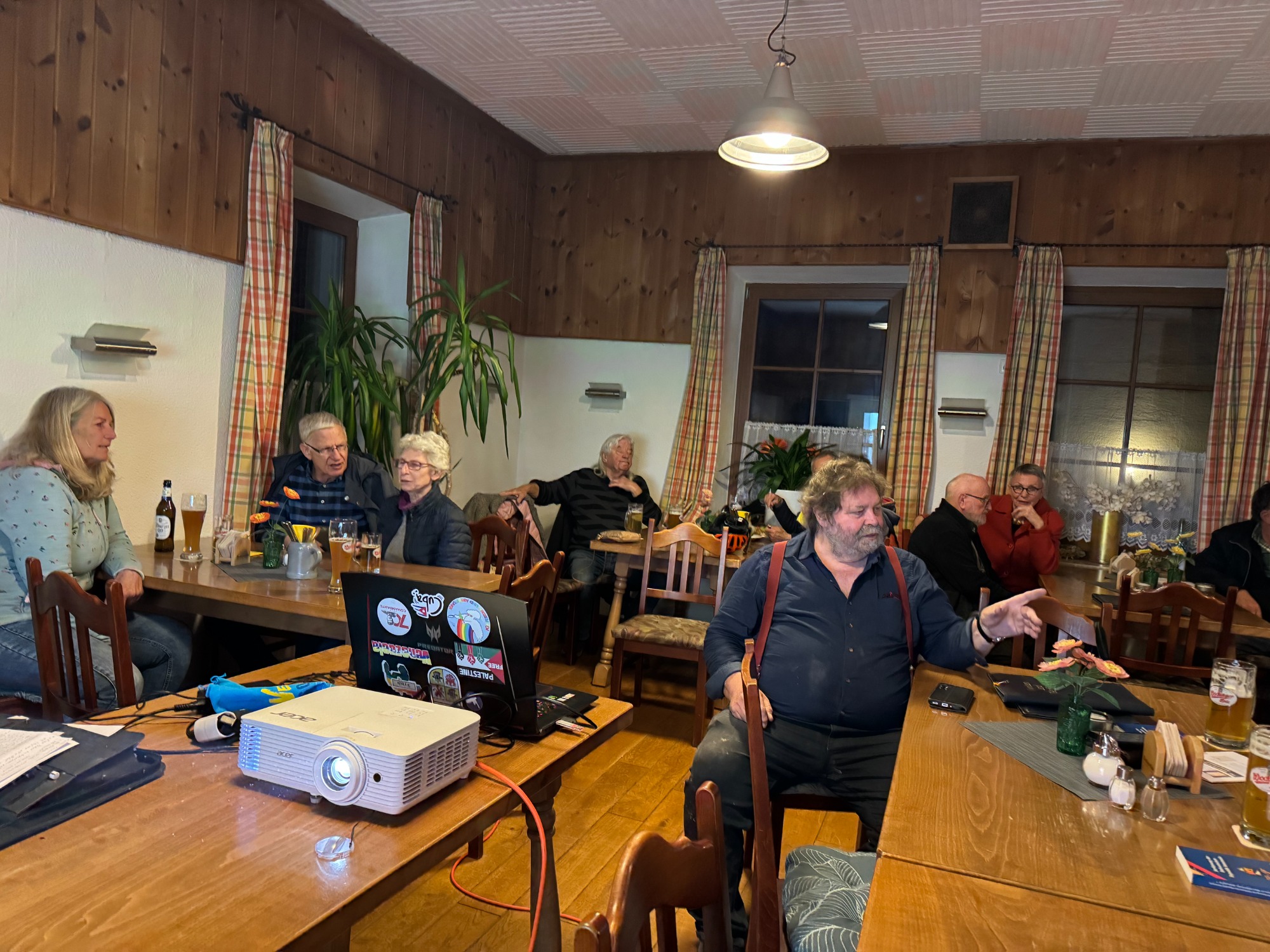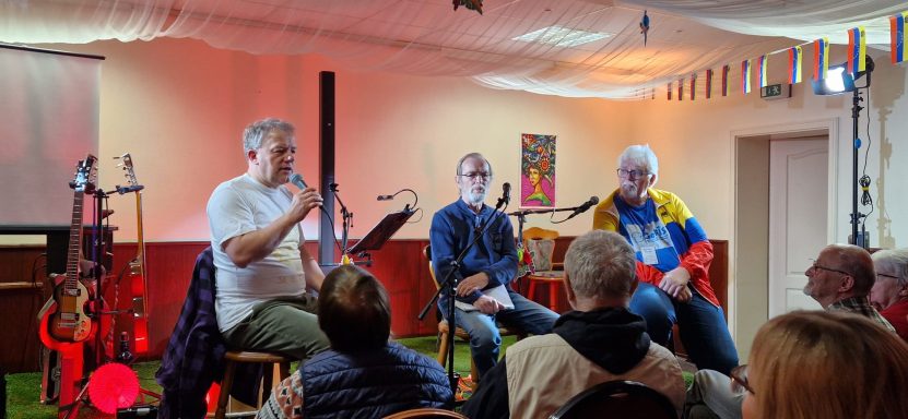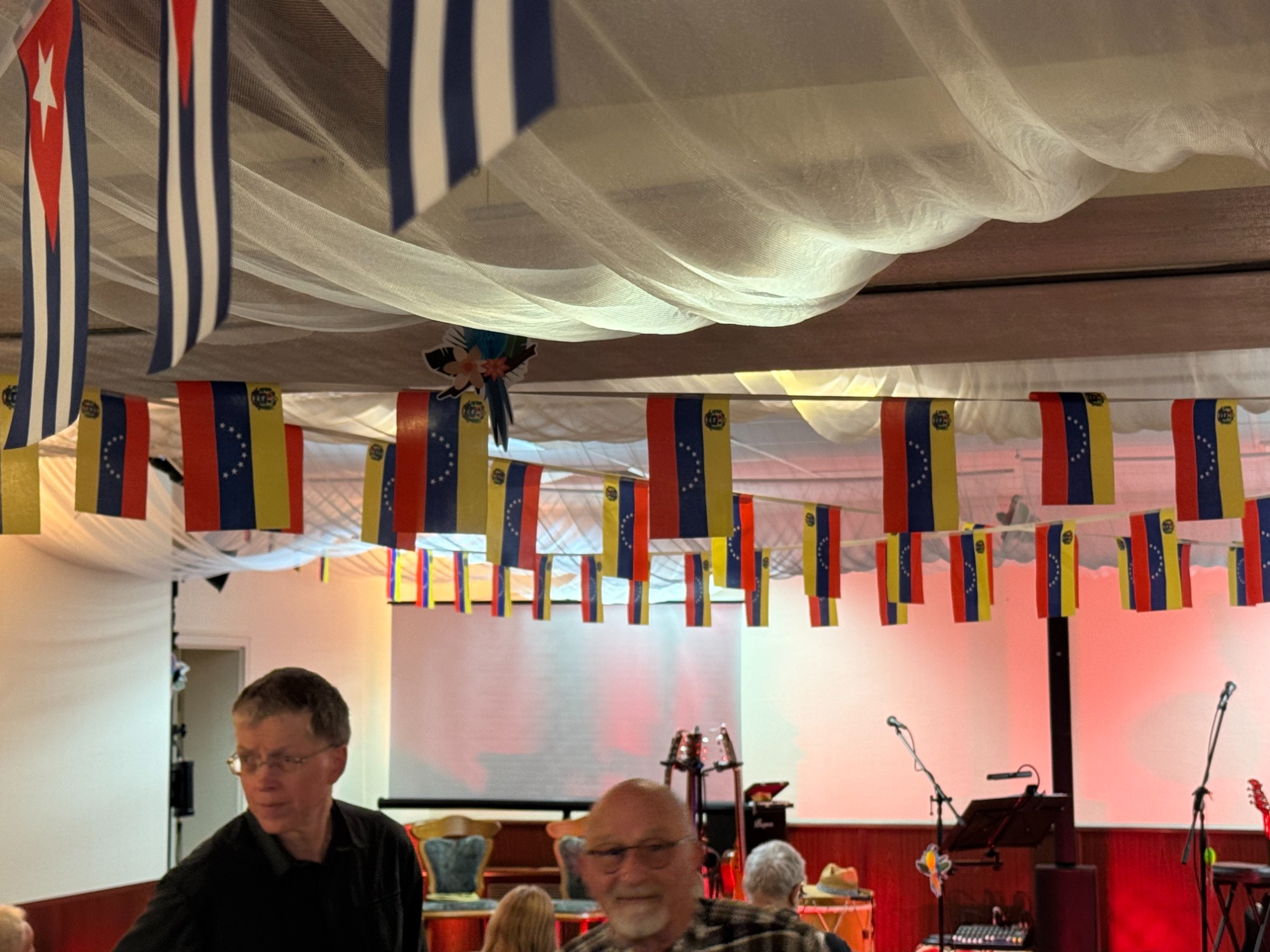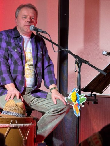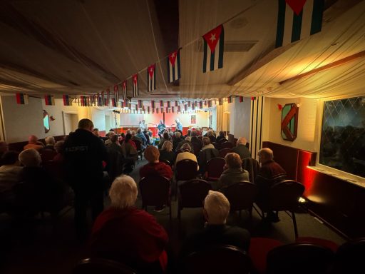 Unter LaTINOamerikacano stand die thematische Ausrichtung fest. Es ging vornehmlich, um die solidarische Unterstützung der fortschrittlichen Kräfte Lateinamerikas und hier im speziellen um Kuba und Venezuela. Genau jene zwei Länder, die seit 2026 aufgrund der völkerrechtswidrigen Aggressionen der USA gegenüber beiden Ländern im besonderen Focus der Weltöffentlichkeit stehen. Neben den vielfältigen lateinamerikanischen Liedern, die Tino und sein Gesangspartner an diesem Wochenende Tobias Thiele und als weiteren Gast Lautaro Valdez einen chilenischen Sänger, der vor der faschistischen Pinochet-Regierung flüchten musste, ein breites musikalisches Programm präsentierte. Diese Gesangseinlagen, die jede für sich genommen, schon ein unvergessliches Erlebnis boten, wurden mit vielen Gedichten von Pablo Neruda den Nobelpreisträger für Kultur, abwechslungsreich ergänzt. Des Weiteren wurde in einem längeren Interview mit den Vertretern von CubSi und GeFiS über die aktuelle Lage in Kuba wie in Venezuela den anwesenden Gästen ein ganz aktuelles Bild geboten. Im Anschluss wurden Fragen der interessierten Teilnehmer beantwortet.