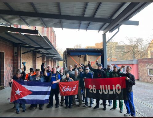 Heinz Schmidt, miembro de la organización de ayuda a Cuba Cuba Sí (https://cuba-si.org/start/aktuelles/) informó sobre los dramáticos efectos del bloqueo marítimo contra este pequeño país con su valiente y decidido pueblo. ¡Su llamado fue a participar en las marchas de Semana Santa en todo el país!