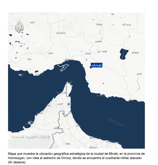 Um zu verstehen, warum Minab zu den ersten US-amerikanischen und israelischen Zielen gehörte, ist es notwendig, die Stadt in ihren geostrategischen Kontext zu stellen. Minab liegt in der Provinz Hormozgan im Südosten des Iran, einem Gebiet von enormer militärischer Bedeutung für seine direkte Aufsicht über die Straße von Hormus und die Gewässer des Persischen Golfs. Dies macht es zu einem wichtigen Punkt für die Operationen der iranischen Revolutionsgarden Marine Force.