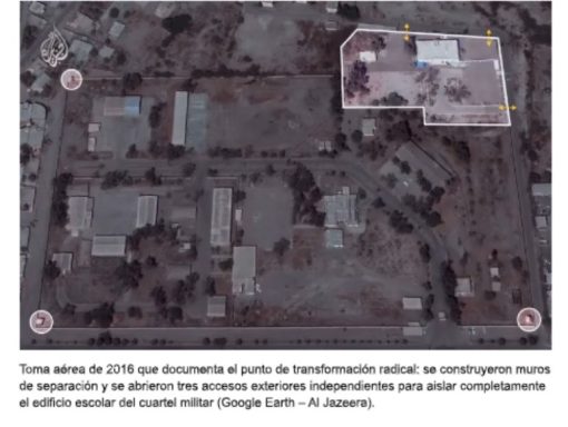 "Seit 2016 war das Schulgebäude klar und streng vom Militärquadranten getrennt und drei Zugänge im Freien wurden für Schüler und Personal für die öffentliche Straße geöffnet."
