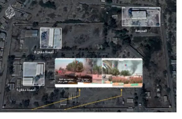Um das Ausmaß und die Art des Angriffs zu verifizieren, analysierte die Digital Research Unit von Al Jazeera zwei Videos, die kurz nach dem Bombenanschlag auf Telegram veröffentlicht wurden. Diese wurden durch den Vergleich von bildenden Sehenswürdigkeiten mit Satellitenbildern präzise geolokalisiert.