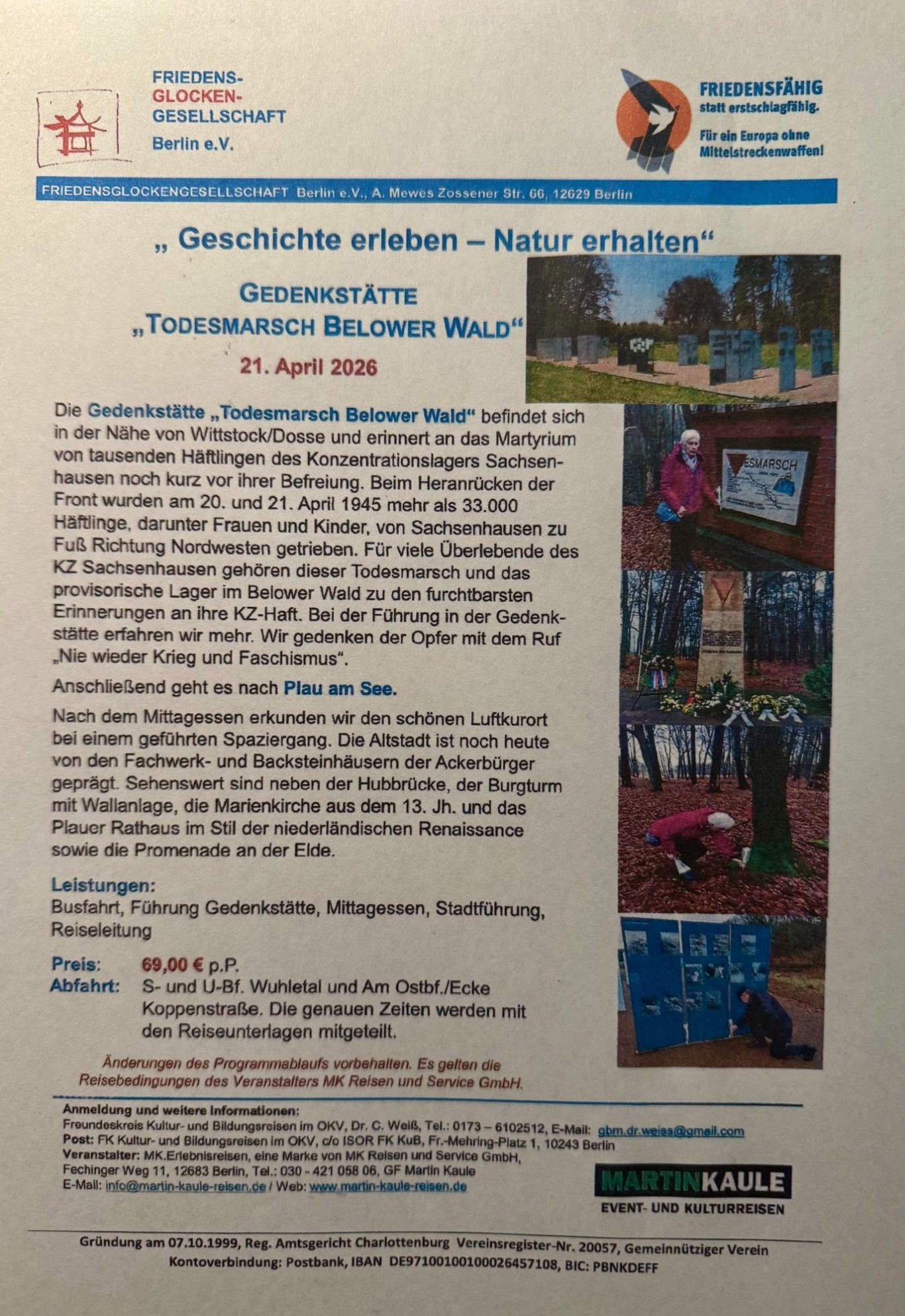 Aus aktuellem Anlass, ist es besonders wichtig an die deutsche Geschichte zu erinnern ! Werr teilnehmen möchte, meldet sich bitte an die Friedensglockengesellschaft Berlin e.V. , um organisatorische Details abzusprechen, wenn man nicht aus dem Raum Berlin kommt.